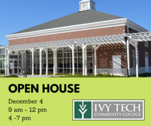 Ivy Tech will be holding an Open House at Mid-America Science Park on Dec. 4 from 9 am-12 pm and 4-7 pm. Learn about programs, degrees and certifications offered in Scottsburg and Sellersburg. Apply for admissions, meet with Ivy Tech representatives, …